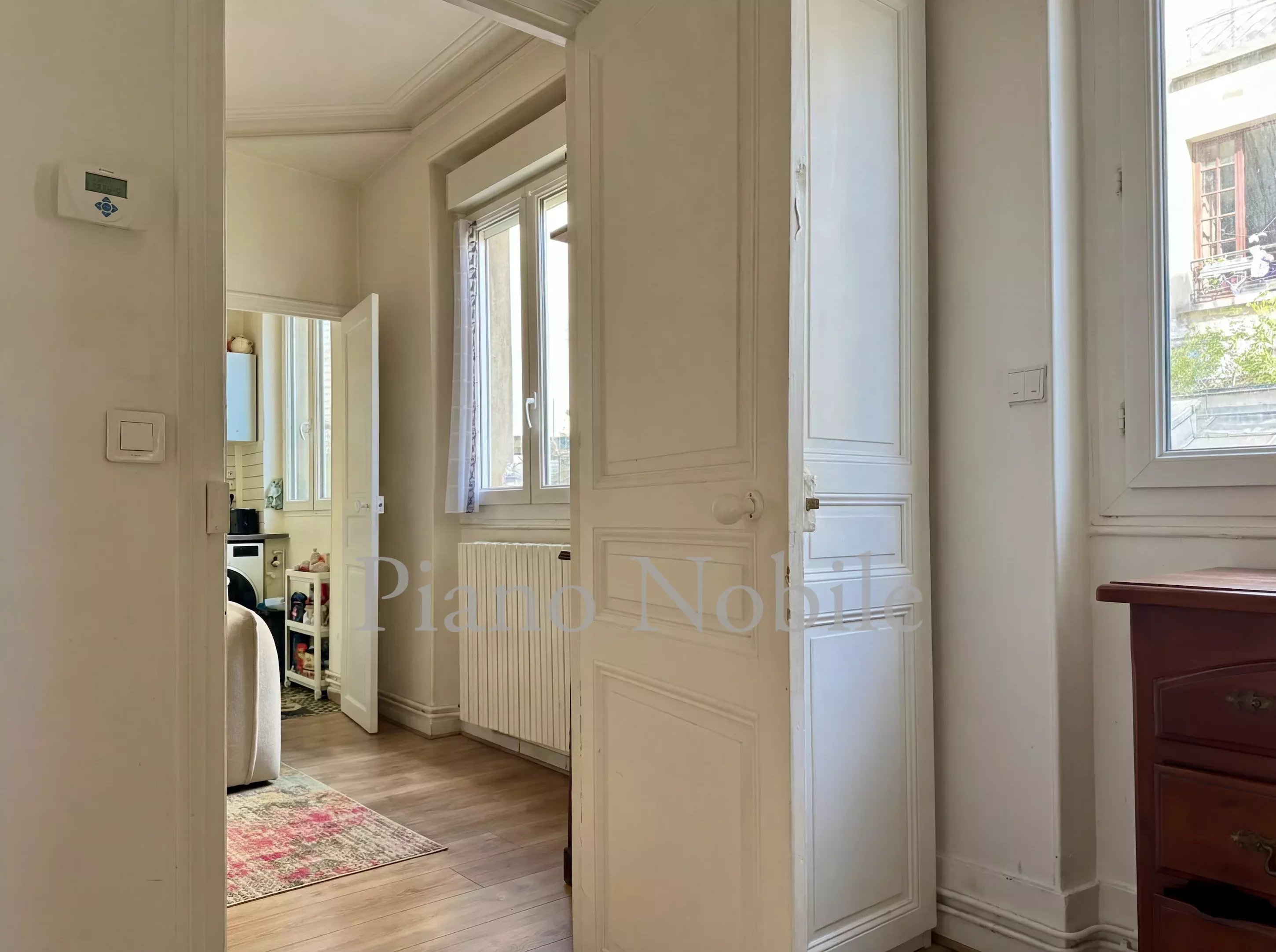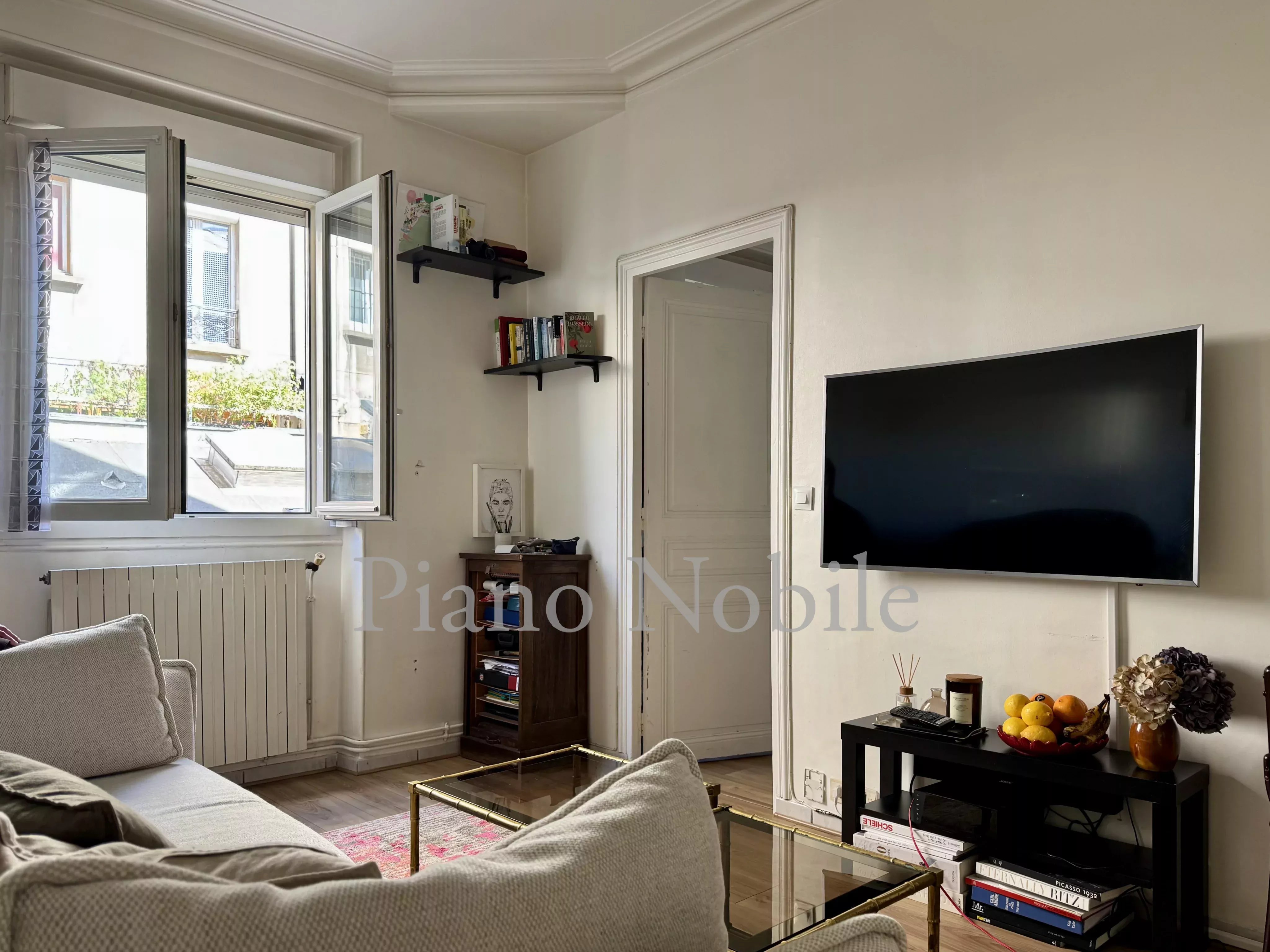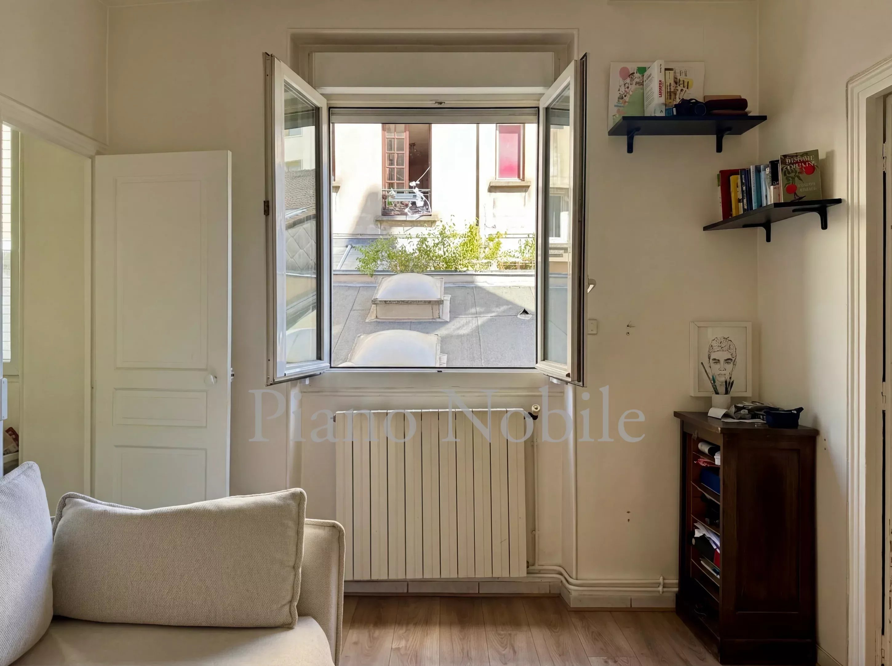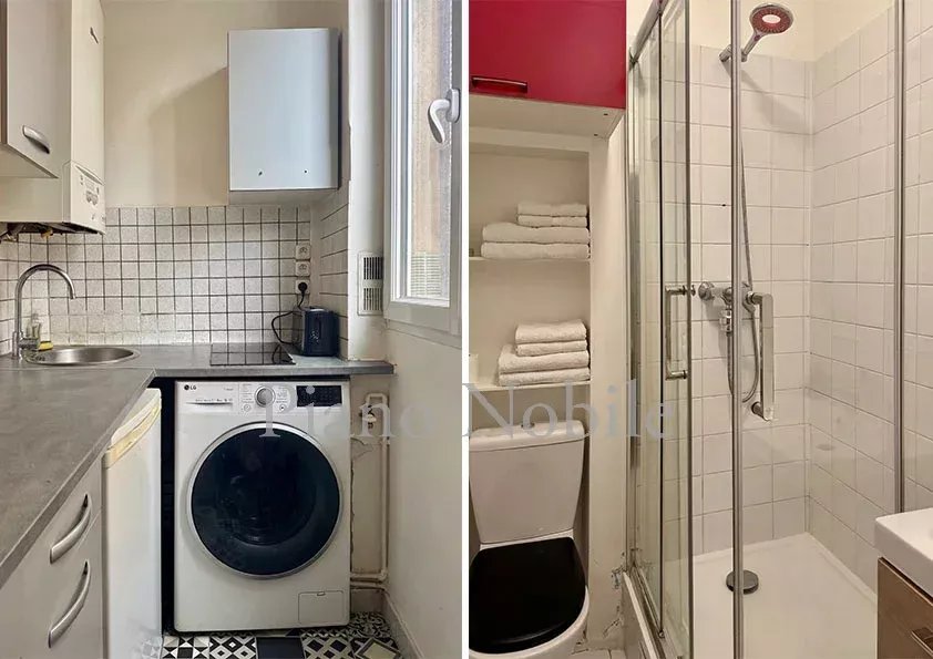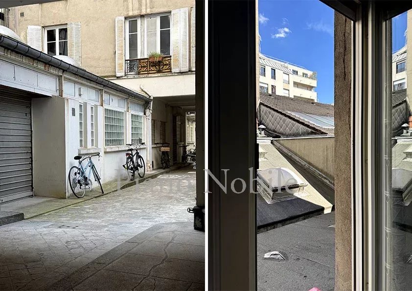 Canal Saint-Martin - Dans un quartier riche de sa scène néo-gastronomique parisienne, au calme de la cour d'une copropriété discrète comprenant plusieurs immeubles, avec gardien. Au premier étage, un appartement de deux pièces et 33,26 m² loi Carrez, comprenant une entrée, une salle de bain avec toilettes, un salon avec cuisine et une chambre. En annexe, une cave.